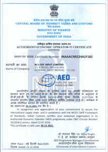 AEO CERTIFICATE T1
