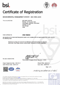 ISO 14001 : 2015 CERTIFICATE BY BSI
